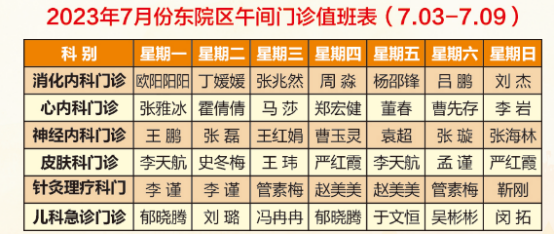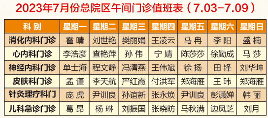 济宁第一人民医院午间门诊排班(7月3日-7月9日)
