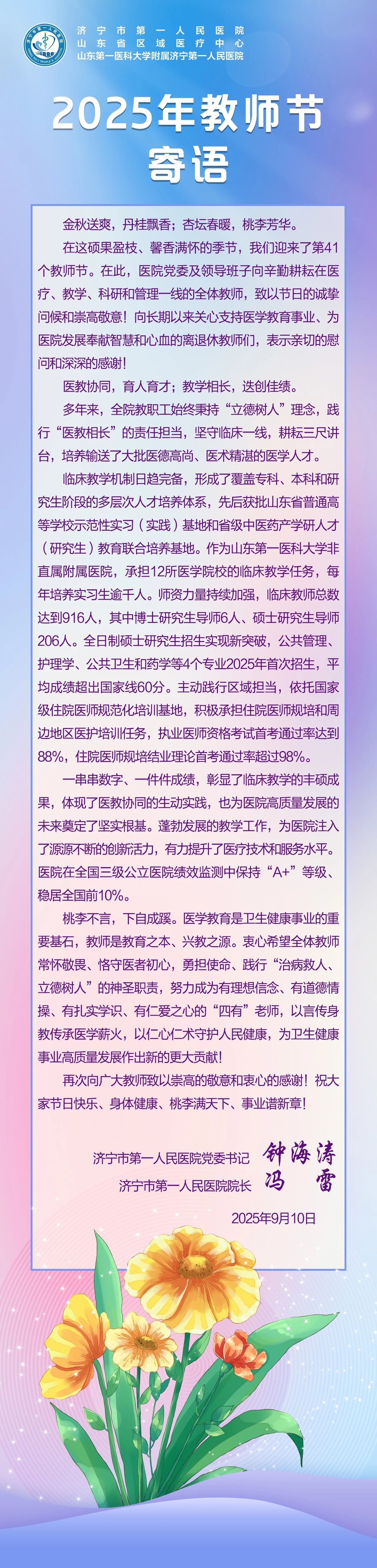 【教师节寄语】致济宁第一人民医院全体临床教师的一封信